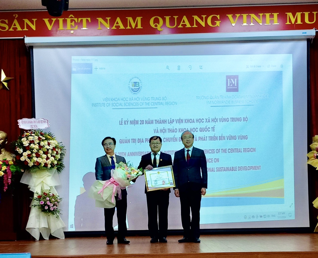 Viện KHXH vùng Trung Bộ tặng quà lưu niệm cho Trường Quản trị kinh doanh EM Normandie (CH Pháp)