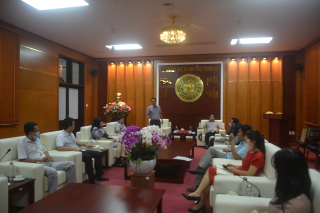 Đón tiếp đoàn công tác, về phía Viện KHXH vùng Trung Bộ có TS. Hoàng Hồng Hiệp – Quyền Viện trưởng; TS. Trần Minh Đức – Phó Viện trưởng và các lãnh đạo Phòng, Ban, Trung tâm trong Viện.